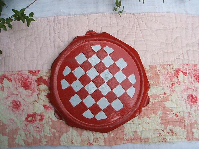 フランスのLyonで見つけたホーロー製赤の市松柄の Trivetteです。とても、しっかりしたお作りです。多少のキズ等はありますが良い状態です。フレンチshabby chicの定番のお品です。キッチンが華やぎます。個人的に大好きなお品で重宝します。 No.AK 2001299 ■size:20,5cm直径x2cm高さ ■condition:very good ■France 1940年代