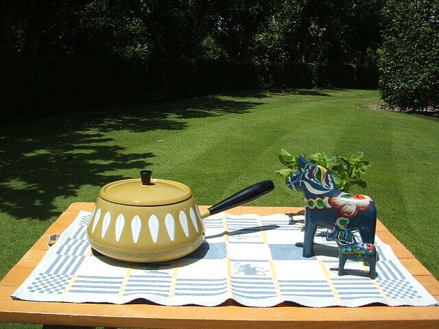 NorwayのCathrine Holmの片手なべです。実際にはチーズフォンデュー用として使われていたものですが、もちろん片手なべとしてお使いいただけます。お色はolive greenです。Lotusシリーズになります。