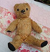 イギリスのロンドンのオークションでゲットしたテディベアです。とてもかわいいベアーです。モヘアの部分が経年のため薄くなった部分もあります。目、足の裏と手の裏は修理されています。手足が動きますので、お座りも可能です。新しい家族を日本に探しています。 No.AK 200951 ■size:35cm身長 ■condition:very good ■UK 1940年代