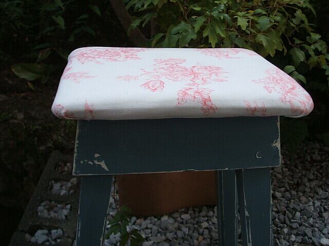 フランスのロワール地方の都市Orleansで見つけたかわいいスツールチェアーです。座椅子の部分は新しいおしゃれな生地に変えられています。いい青のペイントとおしゃれなファブリックがマッチしてステキです。傷等ありますがお使いになる分には問題ありません。とてもfrench shabby chicなお品です。