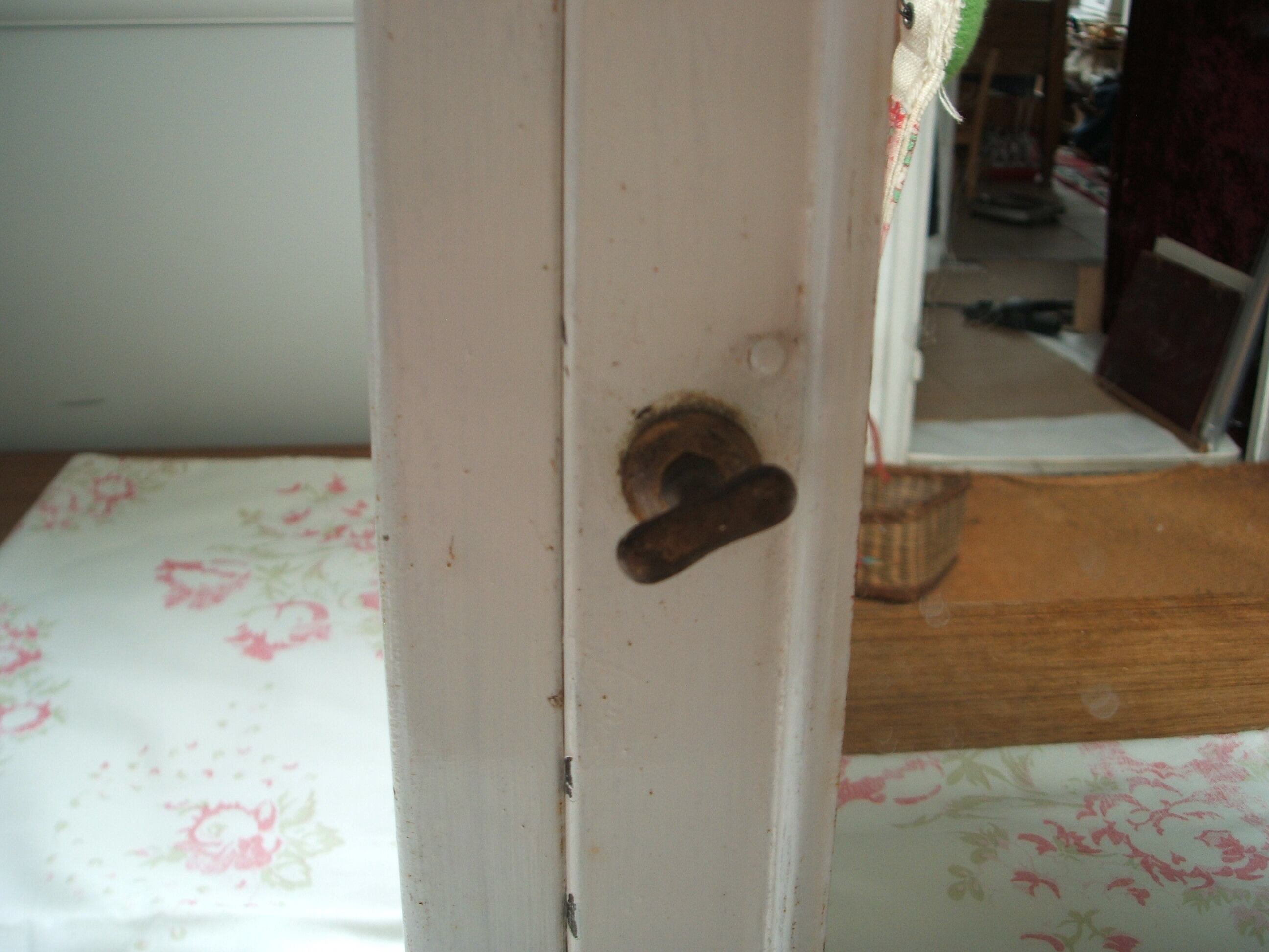 イギリスのロンドンで見つけたおしゃれなメタル製のキャビネットです。正面に鏡が付いており便利です。ところどころ、はげた部分もありますが、全体的に良い状態です。裏側に掛ける留め金は付いておりませんが、付けられて壁にかけてお使い頂くことも可能です。shabby chicなお品です。 No.AK 200804 ■size:38cm高x31cm横x12,8cm幅 ■ good ■UK 1950年代