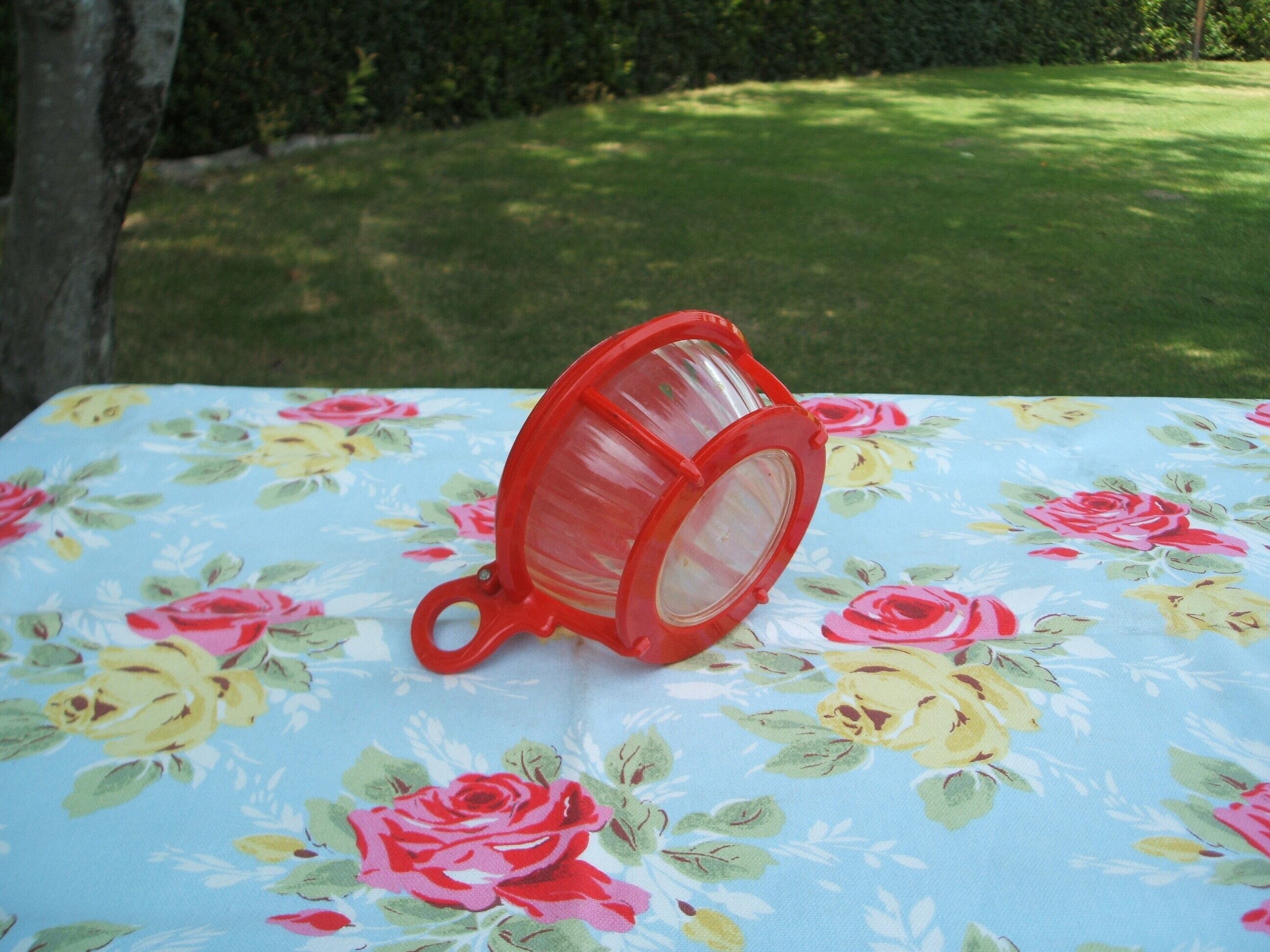 イギリスのロンドンで見つけた赤に水玉模様のかわいいジャムポットです。現在、出品中のbutter caseとお揃いになります。プラスチィック製になります。sugar potとしてもお使いいただけます。とてもrareなお品です。コンディションも良いです。 No.AK 200696 ■size:11cm直径x5,5cm高 ■ good ■UK 1940年代