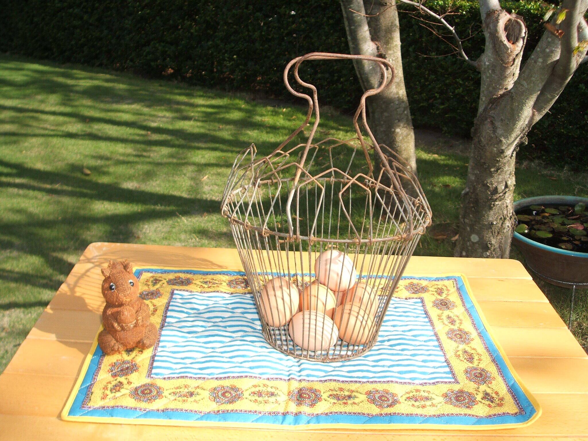 フランスのかわいいヴィンテージワイヤーエッグバスケットです。 良い錆びぐわいです。傷みも全くありません。まだまだお使いいただけます。 文句なしにシックでかわいいエッグバスケットです。 No.AK 20084 ■size: 20.5cm開いた時の直径 31cm高さ 12.5cm下の直径 ■condition: very good ■France 1930年代