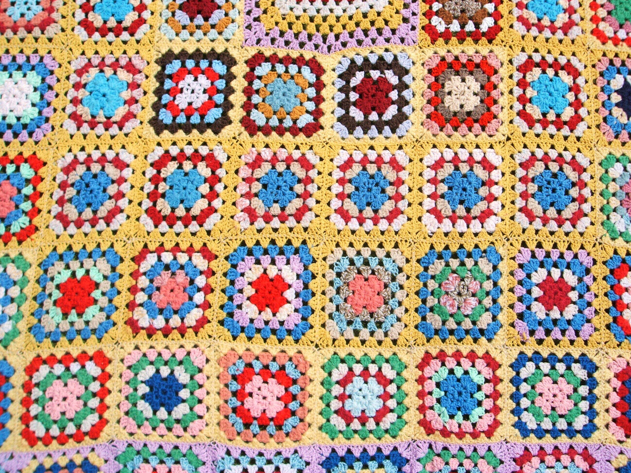 イギリスのロンドンで見つけました。とてもレトロな雰囲気の色合のcrochetです。素材はウールになります。縁取りのパープルと全体の色合がマッチして・・・とてもshabby chicな感じのcrochetです。 シミ、傷みなく状態も良いです。 No.AK 200756 ■size:174cmx164cm ■ condition:very good ■UK 1950年代