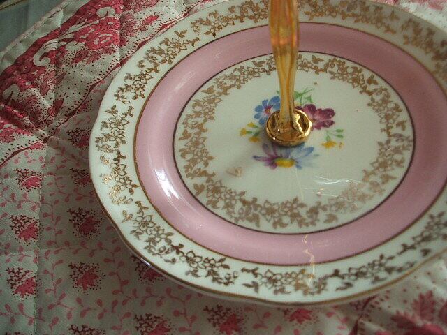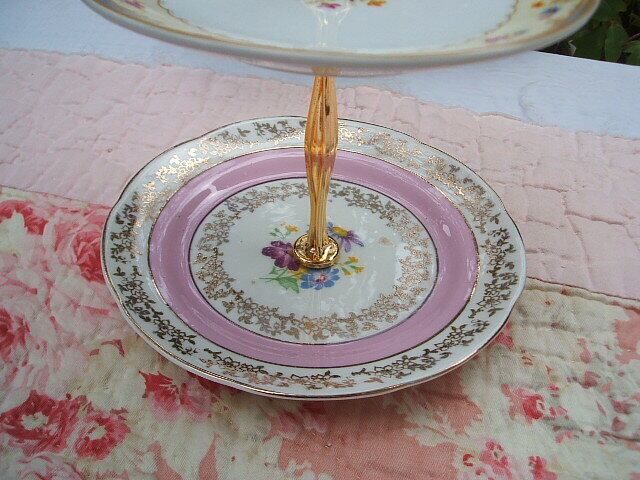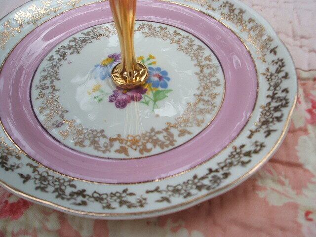 イギリスのロンドンで見つけたかわいい2段式ケーキスタンドです。小さ目のプレート2枚でのスタンドす。クッキーやプチフールなど小さ目のスイーツを置かれてティタイムのお供にいかがでしょうか?小花と可憐なブーケがかわいいケーキスタンドです。2枚とも良い状態です。ピンクのプレートに接着剤で付着したような跡があります。お写真でご確認ください。お使いになる分には問題と思います。