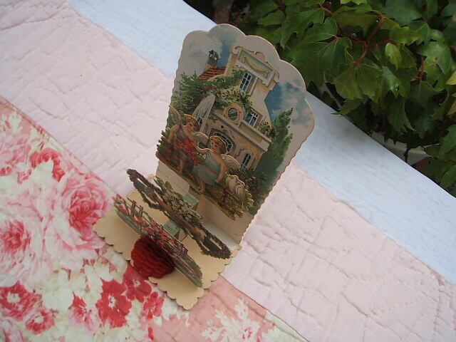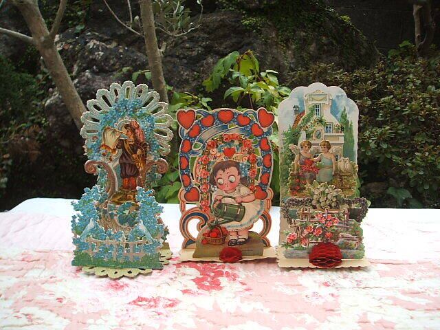 イギリスのロンドンで見つけた立体型のかわいいantique cardです。どれもValentine Dayに送られたカードです。エンジェルやかわいい女の子がとても細密なカットが施されたカードです。額に立体的に飾られるととても素敵な絵になりますね。印刷が2枚はドイツです。とてもきれいなカードです。コンディションも破れ等なく良いです。一枚のみ閉じたときに文字が接着剤で一部見られなくなっています。