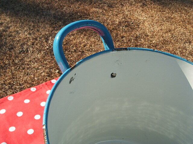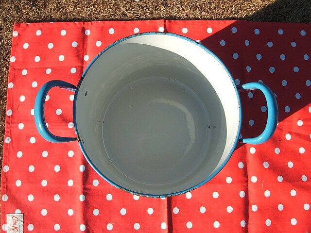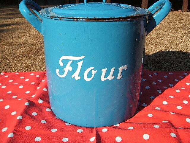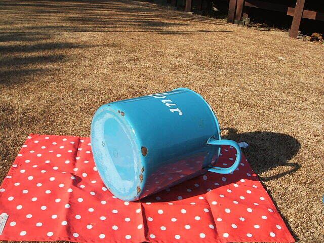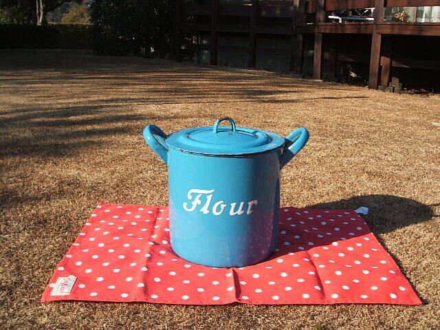 ロンドンで見つけたとてもおしゃれなenamel flour binです。とてもきれいなブルーに白でFlourの文字がステキです。内側にちいさなキズ、底等にお写真で見られるキズがありますが、穴などはなく、全体的によい状態です。 No.AK 200516 ■size:22,5cm直径x21,5cm高 ■condition:very good ■UK 1940年代