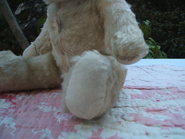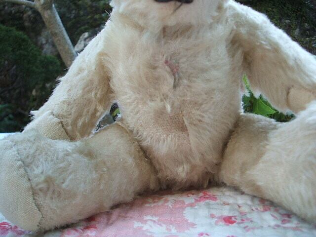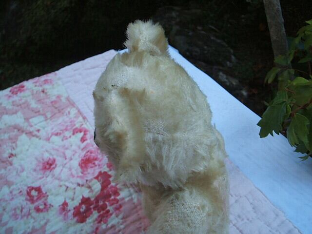 イギリスのManchesterで見つけたantique Teddy Bearです。小さなかわいい子です。経年のためモヘアの毛が取れたところがあります。また、手足の裏側は新しい布できれいに修理されています。目はアンバーに黒目です。お鼻の糸が少し取れかかっていますが良い状態です。ちょこんと座った姿がとてもかわいいBearです。 No.AK 2001273 ■size:31cm身長 ■condition:very good ■UK 1930年代
