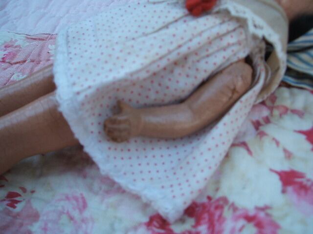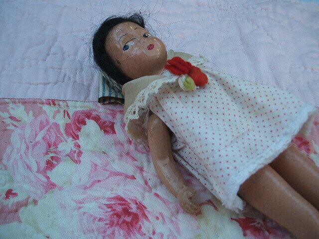イギリスのロンドンで見つけた古いお人形です。1920年代のイギリスのお人形ということでした。木製のような素材で手は動きます。お顔の部分はペイントされています。経年のため手足等のペイントがはがれた部分がありますがその分レトロな雰囲気がなんとなくいいです。お洋服の襟の後ろの部分に3枚目で見られますが破れがあります。 No.AK 2001094 ■size:20cm身長 ■condition:very good ■U.K 1920年代