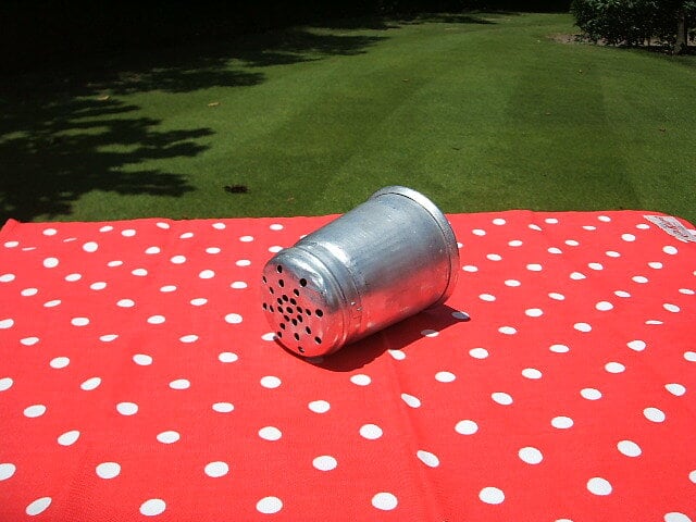 イギリスのロンドンで見つけたTala社のシフターです。アルミ製です。上の部分にへ凹みが少しあります。お写真でご確認ください。蓋が少しゆるいです。また、上の蓋の穴が5mmと大きめになります。キッチンのデコレーションとしてもかわいいです。 No.AK 2001277 ■size:18,5cm下直径x6,5cm上直径x11cm高 ■condition:very good ■UK 1940年代