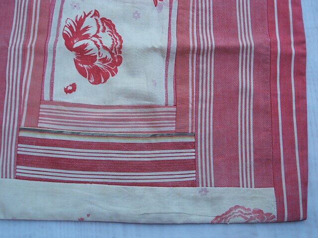 フランスのAuvergne-Rhone-AlpesのMOULINSで見つけたとてもおしゃれなfrench antique fabricで作られたパッチワーククッションカバーです。パッチワークの部分は1930年代のアンティークファブリック、裏地の赤無地は最近の生地です。表のパッチワークの生地に経年による小さな傷みがあります。お写真でご確認ください。全体的には良い状態です。