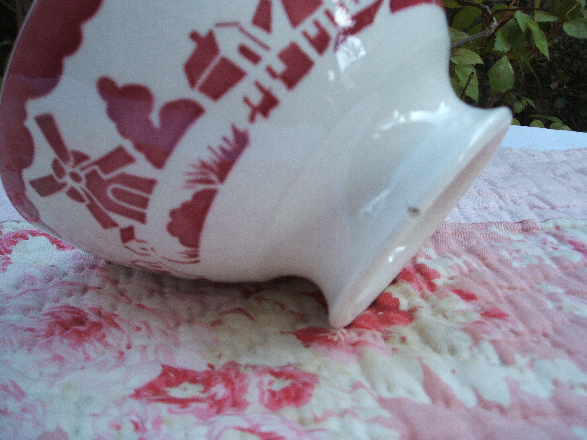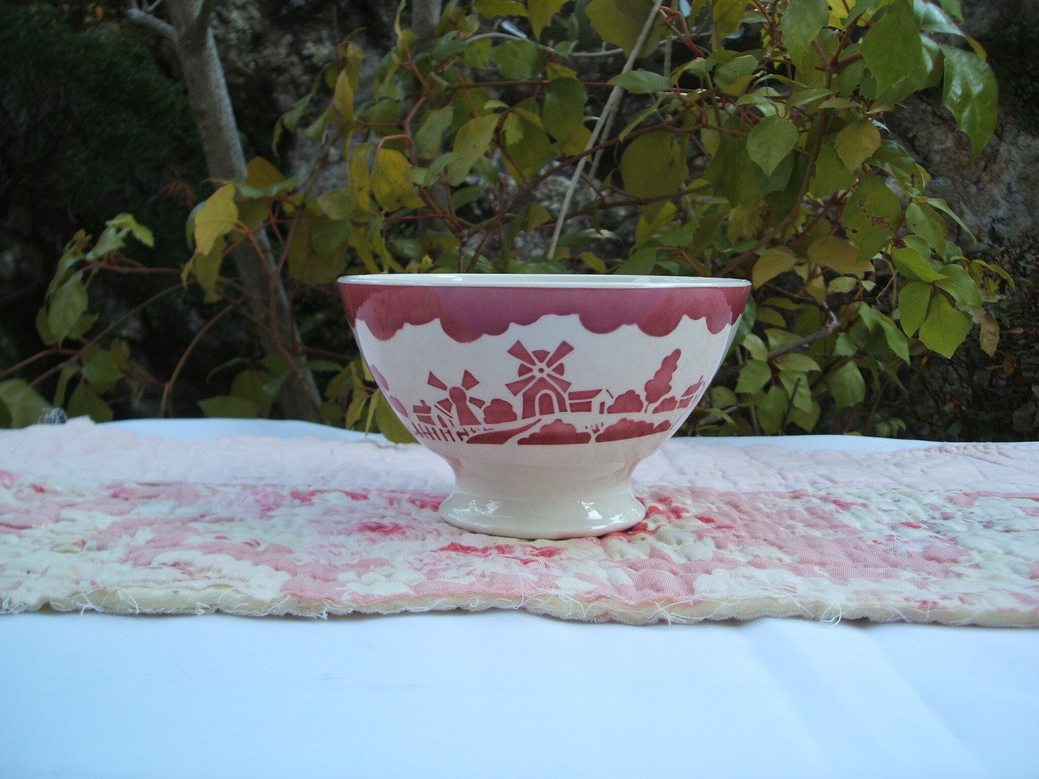 フランスのパリで見つけた風車柄のカフェボウルです。白地に赤のムーランが牧歌風でステキなボウルです。カフェボウルとしてはもちろんオリーブを入れてテーブルに・・・いろいろな用途にお使いいただけます。下の台に2mmほどの欠けがある以外は良いコンディションです。Badonvillerで作られたボウルです。 No.AK 200999 ■size:14cm下の直径x8cm高 ■condition:very good ■France 1920年代