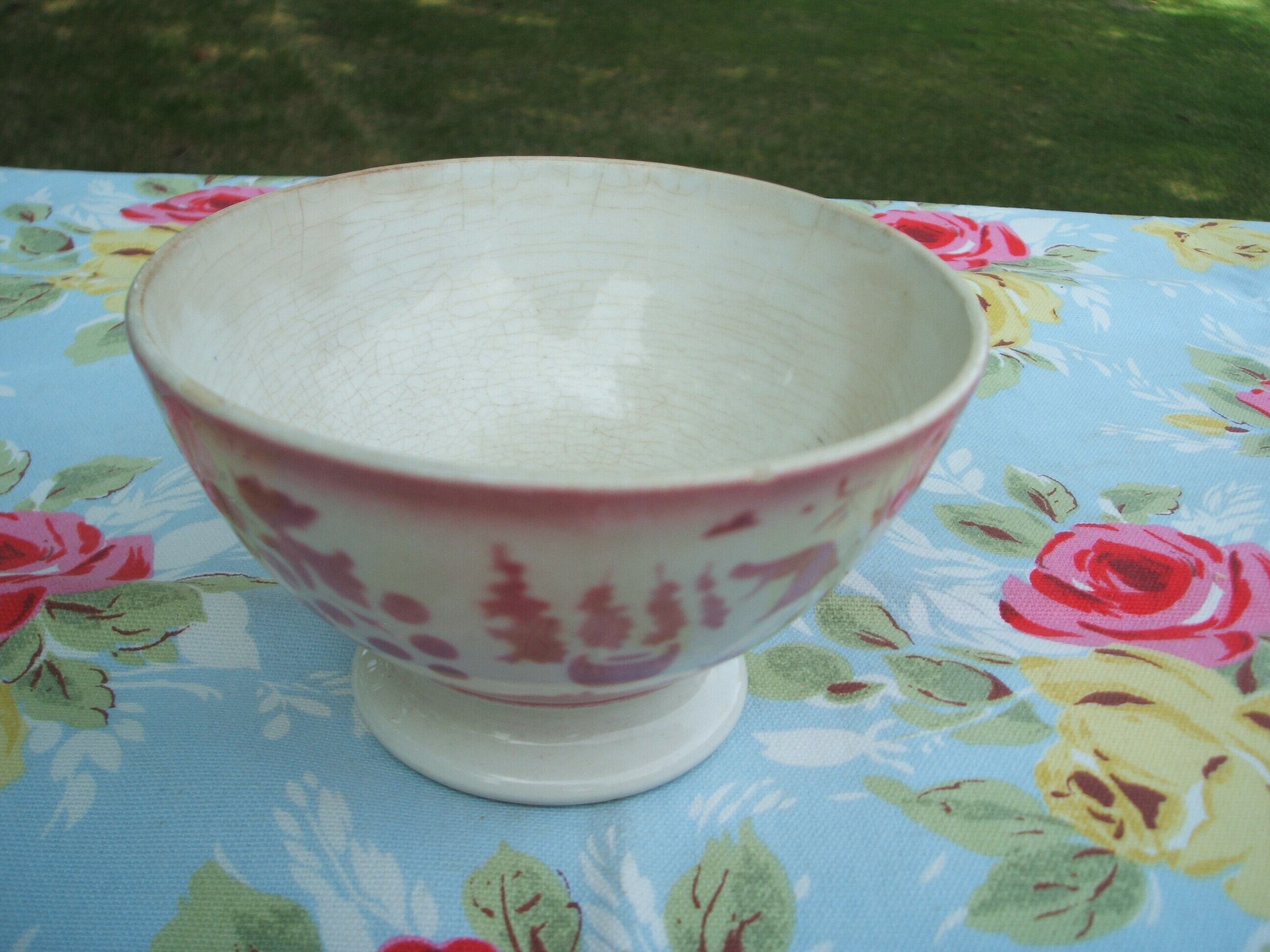 フランスのパリで見つけたちょっぴり小ぶりのカフェボウルです。何ともレトロなピンク色で森林やおそらく農家ではないかと思いますが描かれています。内側にシミや陶器に見られる自然な乾裂はありますが個人的にはお使いいただけるかと思います。オリーブなどを入れてテーブルに出されても・・・自分用のカフェボウルとしても・・・かわいいボウルです。