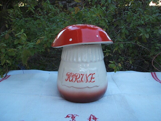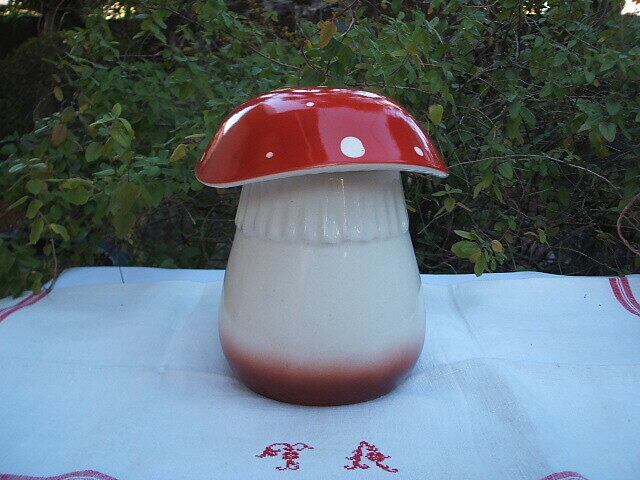 フランスのパリで見つけた、かわいいキノコのコンテナーです。個人的に大好きなシリーズで今でもとても人気のお品です。同じシリーズを出品中ですがこちらはFARINE(小麦粉)になります。キノコシリーズで一番大きいポットです。陶器特有の貫入はありますが、ひびではありません。良い状態です。