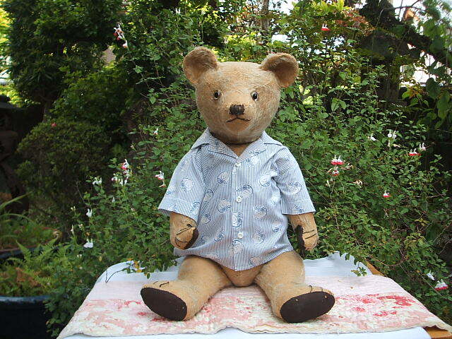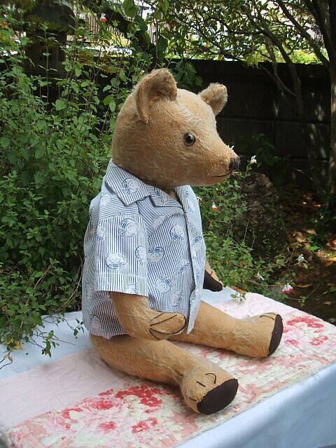 また、大きく大変レアなTeddy Bearです。ブルーのストライプのベア柄のシャツがとても似合っているハンサムボーイです。