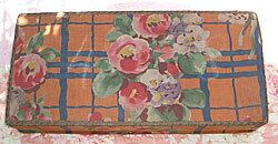 フランスのパリの蚤の市で見つけたANTIQUE FRENCH FABRIC COVERED BOXEです。一目で気に入った箱です。もともとはソーイング用として使われてきたものですが、お気に入りを入れても・・・フランスらしいプリントのお花がステキです。角のキズなどあるヴィンテージコンディションですが、お手持ちのコットンやレースを入れられても・・・とてもshabby chicです。