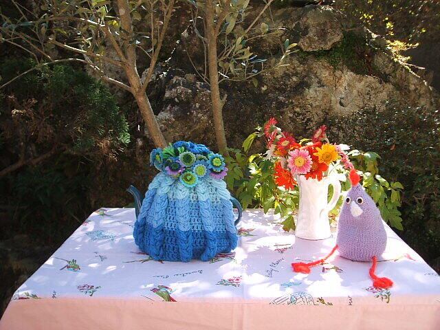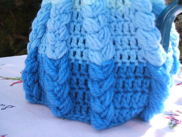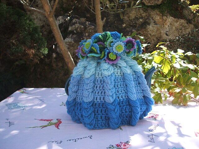 イギリスのロンドンで見つけたかわいい手編みのtea cozyです。ブルーを主体にグラデーションで編まれています。トップの部分はかわいいフェルト製のお花がいっぱいついて何ともかわいいです。こちらは新品です。 売り切れました。 No.AK 2001135 ■size:23cm下の部分x20cm縦 ■condition:new ■UK 1960年代