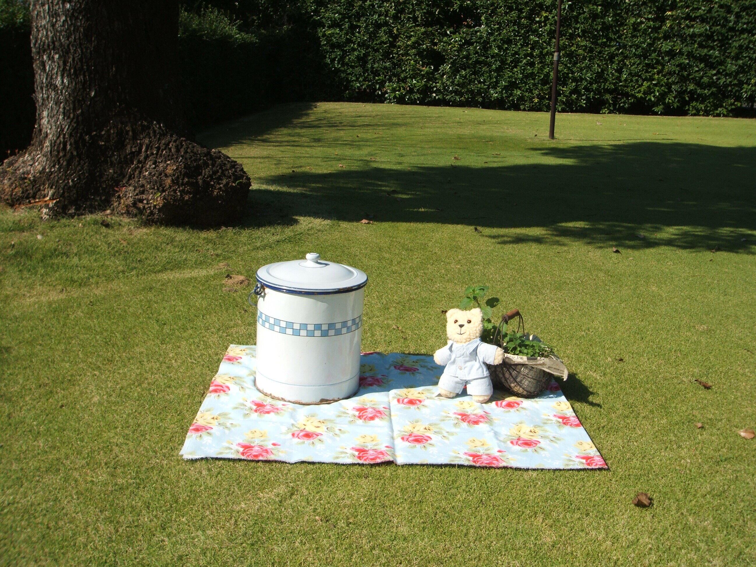 フランスのParisで見付けた市松柄が入ったステキなホーローの蓋つきバケツです。持ち手の部分は木製でおしゃれです。内側に若干さび等が見られますが、全体的に良い状態です。人気のlustucruがshabby chicです。物入れ等に・・・・おしゃれです。 No.AK 200751 ■size:25cm直径×25cm高 ■condition:very good ■France 1930年代