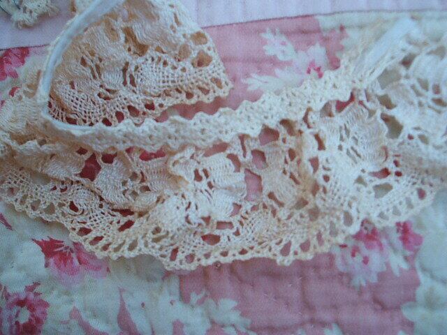 イギリスのロンドンで見つけたアンティークレースとボタンです。短い方のレースは多分お人形のお洋服の襟だと思います。小さなランプシェード用に使われても・・・・ヴィンテージのボタンもレトロ感がありポイントに使われるとかわいいです。ラメ入り黄色のボタンの糸を掛ける部分に若干さびがありますが気になるものではないと思います。すべてヴィンテージコンディションです。