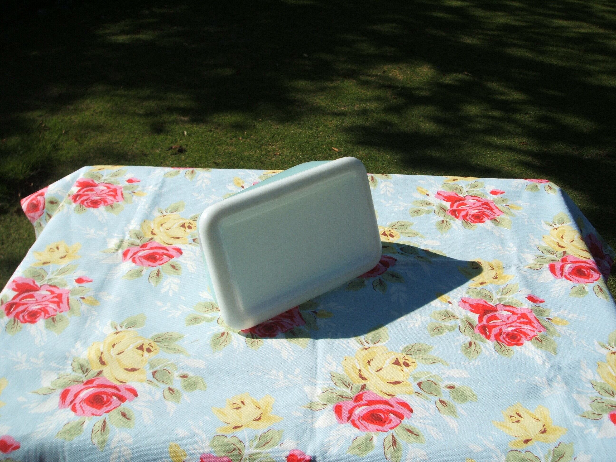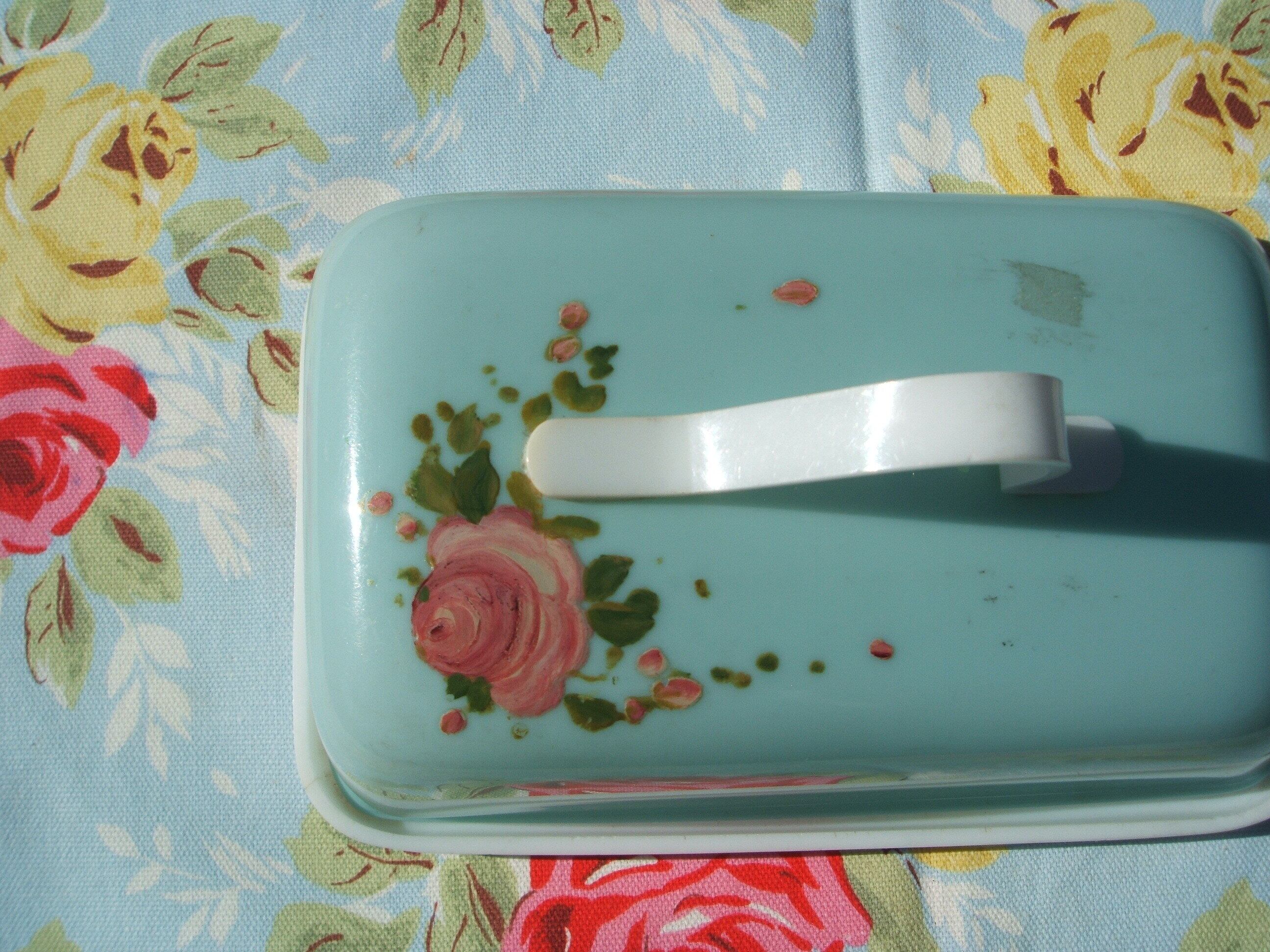 イギリスのロンドンで見つけたとてもおしゃれなbutter caseです。egg duck blueにenglish roseがとてもステキです。プラスティックになります。大きさもたっぷりめです。持ち手もおしゃれで上品なケースです。状態もとても良いです。珍しいお品で入手困難なお品です。 No.AK 200742 ■size:18cmx12cmx7cm ■condition:very good ■UK 1950年代