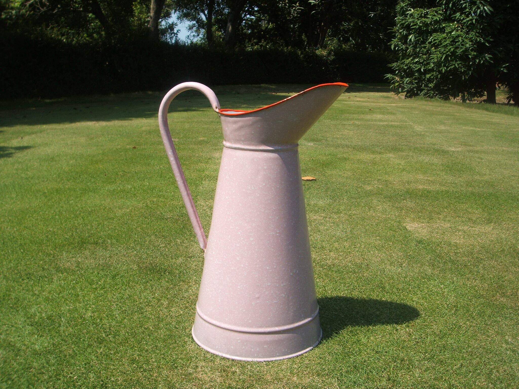 フランスの古いジャグです。お色はわかりずらいですが、ベビーピンクとホワイトの霜降りのような感じです。上の部分は赤の縁取りとなりとてもチャーミングなjagです。そのまま置かれてもステキですが、お花・・・アジサイのドライフラワーなどを活けられてもステキです。目立った傷みもなく、良いコンディションです。 No.AK 200363 ■size:20cm底直径x38cm高 ■condition:very good ■France 1940年代
