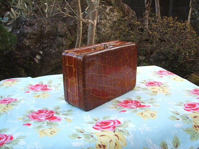 フランスのパリで見つけたとてもかわいいアルミ製のバスケットバッグです。クロコダイル柄がおしゃれです。実際に持つこともできます。キズ等多少ありますが、shabby chicなとてもチャーミングなバスケットバッグです。 売り切れました。 No.AK 2001050 ■size:21,5cmx14cmx8cm(マチ) ■condition:very good ■France 1940年代