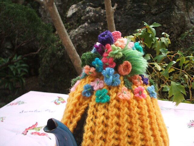 イギリスのロンドンで見つけたかわいい手編みのtea cozyです。オレンジ色にお花がいっぱい付いていてとてもかわいいです。 丁寧に手編みで編まれた温かみのあるお品です。1960年代のお品ですが未使用で置かれたものです。3時のお茶の時間に・・・朝のミルクティー用のポットにいかがですか? No.AK 2001168 ■size:17cm横x13cm縦 ■condition:new ■UK 1960年代
