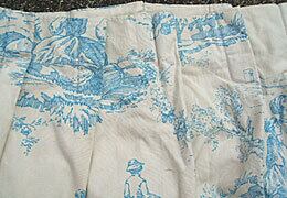 フランスのNormandie地方で見つけたshabby chicなカーテンです。クリーム色に水色のカントリー風景が描かれたとてもステキなカーテンです。裏地も付いていていますので、しっかりと遮断してくれます。裾に少し汚れがありますが、クリーニングで落ちるかと思います。全体的には目立ったシミ、破れなく良い状態です。個人的にとてもステキなお品かと思います。