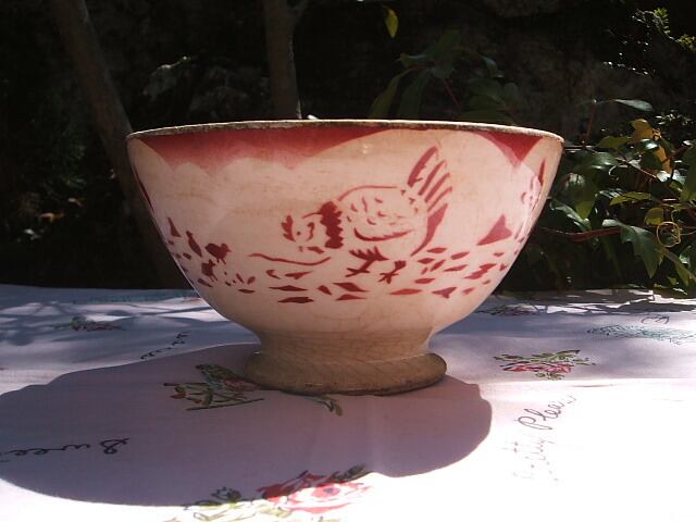 フランスのパリで見つけたshabby chicなカフェボウルです。1890年代のものなので貫入と1箇所ヘヤー他経年に伴いダメージ等がありますがアンティークコレクターには魅力的なお品です。ボタン等をいれても・・・お花を活けても・・・フランスの象徴の赤のニワトリ柄がかわいいです。 売り切れました。 No.AK 2001097 ■size:14,5cm直径x7,5cm高 ■condition:good ■France 1900年代