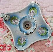 フランスのパリで見つけたきれいなキャンドルホルダーです。水色のグラデーションにスミレのようなお花がとてもきれいです。とてもshabby chicな一点です。状態もいい感じのヴィンテージコンディションです。お勧めのお品です。 No.AK 200992 ■size:11cmx11cm,cross15,5cm ■condition:good ■France 1930年代