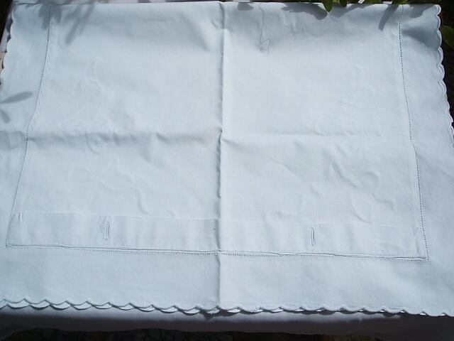 イギリスのロンドンで見つけた真っ白のコットンにおしゃれな刺繍入りのピロケースです。スカラップの縁取りに小さなカットレースが施され三つ葉のクローバーの刺繍と気品とかわいさのピロケースです。 裏側はアンティークボタンでの開閉となります。シミ、傷みなくとても良い状態です。 No.AK 2001138 ■size:84cmx59cm外側 72cmx49cm内側の本体部分 ■condition:very good ■UK 1930年代