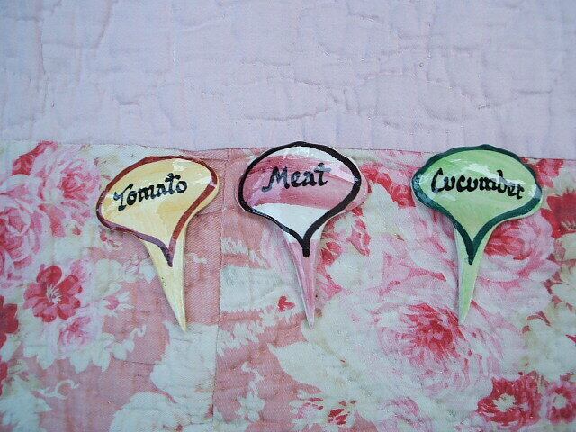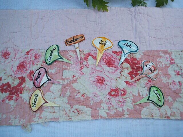 イギリスのロンドンで見つけたとてもセラミック製のサンドイッチマーカー8本セットです。それぞれお色違いで各種類がアルファベットで書かれています。とてもおしゃれでレアなお品です。ホームパーティーや・・・お店でのディスプレーなどに・・・Salmonだけ修理されていますが残りの7つはダメージ等なく良い状態です。