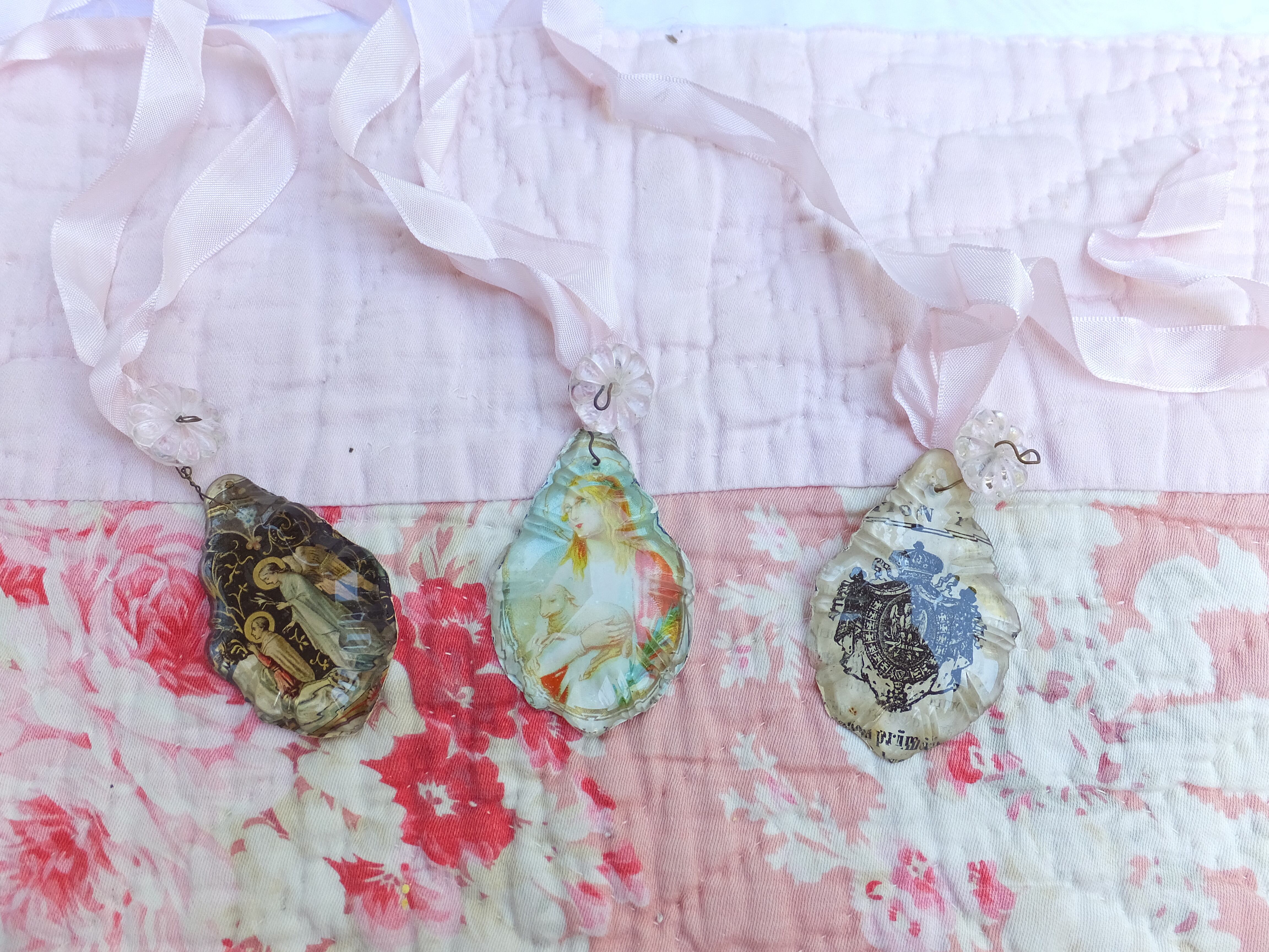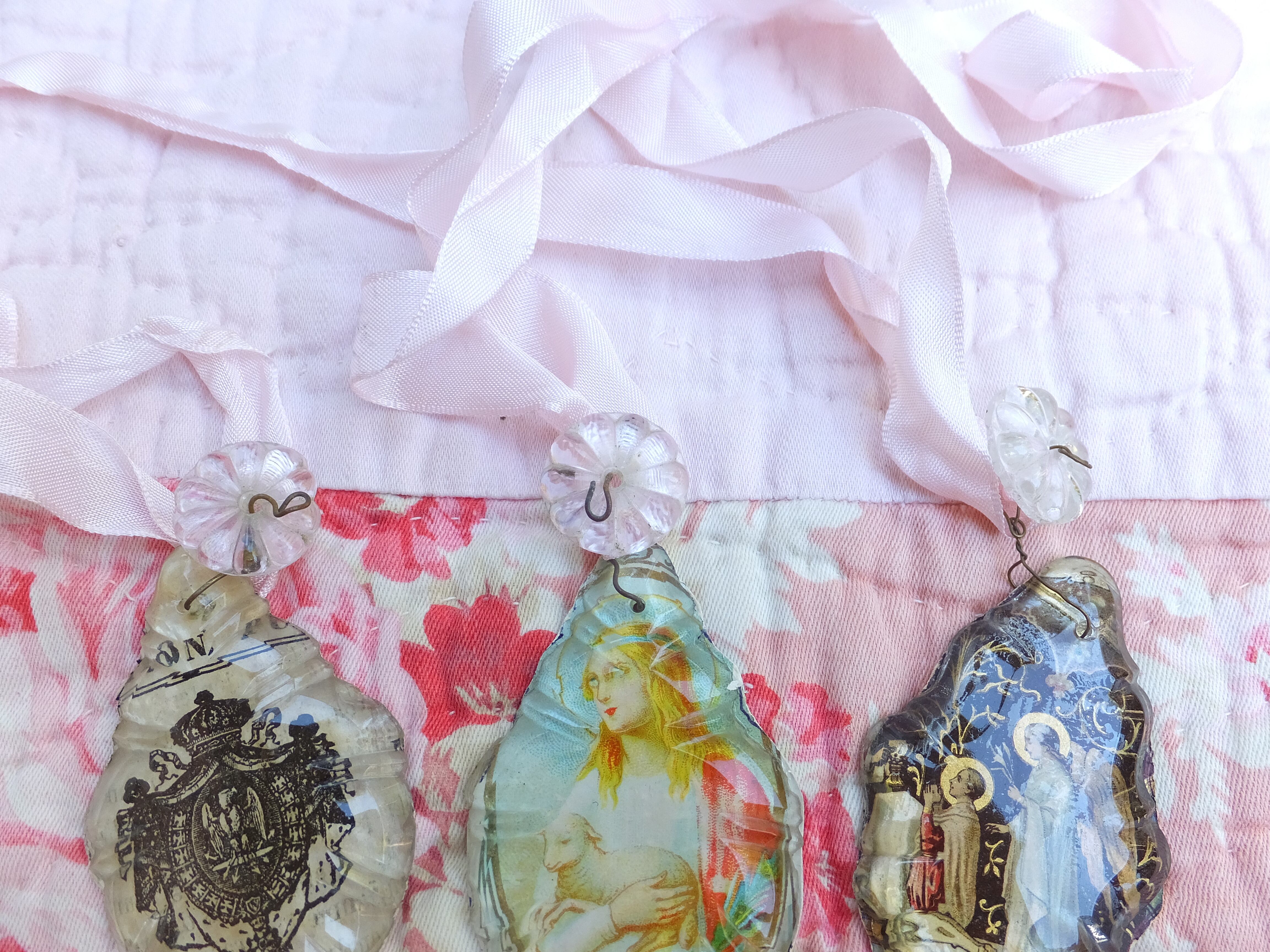 フランスのNormandieで見つけたとてもshabby chicなオーナメントです。クリスタルガラスにアンティークプリントが入れられたオリジナル製です。ライティング、壁に・・・シャンデリアに下げてもとてもステキです。 とてもステキな3点です。 No.AK 2001361 ■size:マリア&紋章4,5cmx8,5cm 天使4cmx8,5cm ■condition:good ■france 1940年代