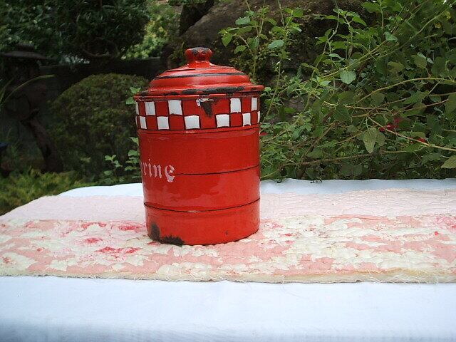 フランスのRhone-Alpesの Limasでランプシェードど一緒に見つけました。かわいい赤の市松柄のエナメルポットです。キズ、錆等見られますが、まだまだお使いいただけるかと思います。とてもshabby chicなお品です。FARINEとありますが、、気にせずいろいろなものを入れておいいただけます。 No.AK 2001037 ■size:12cm直径x13cm高(蓋含まず) ■condition:good ■France 1940年代