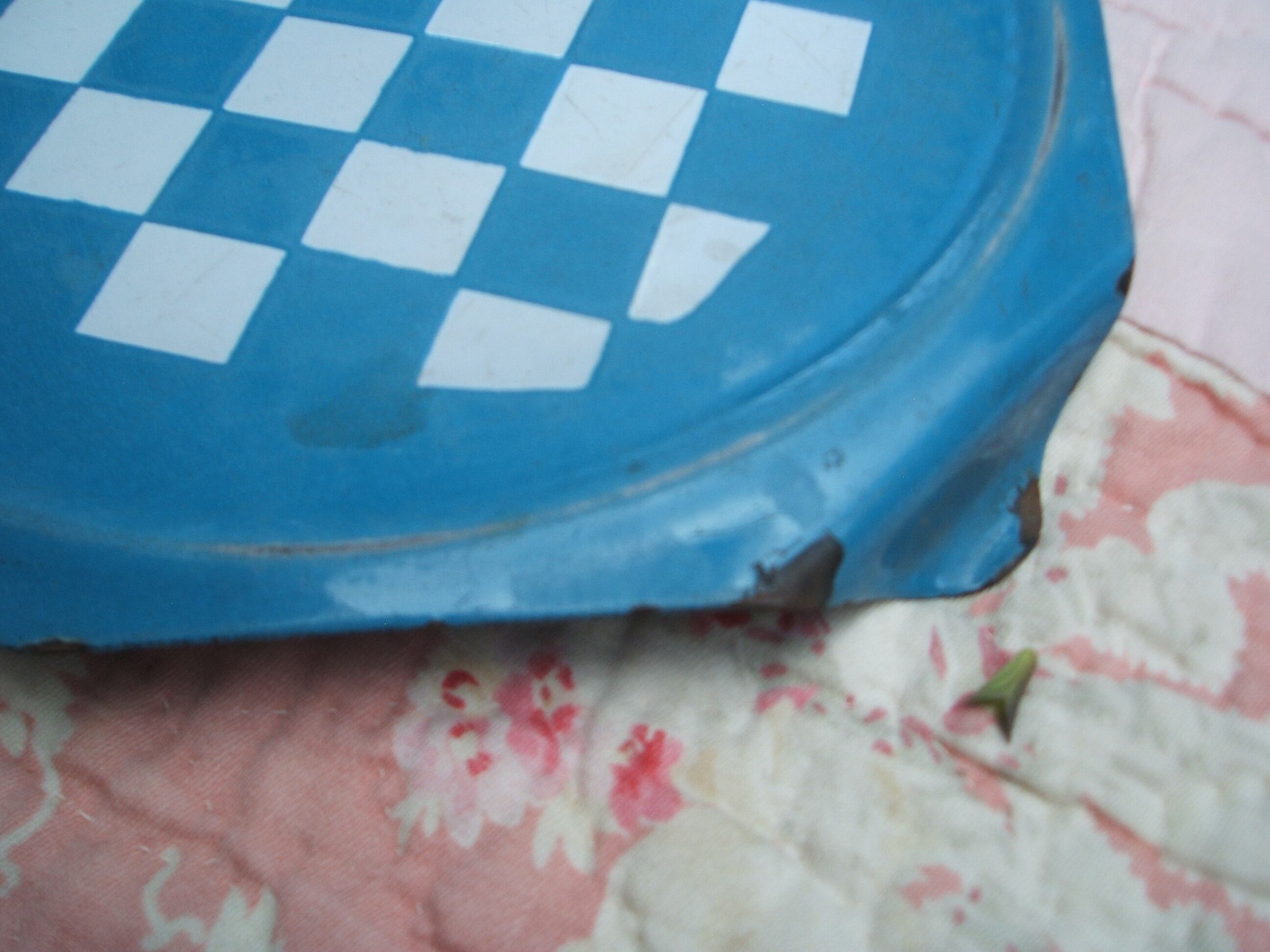 フランスのパリで見つけた市松模様の鍋敷きです。フランスではとても人気の柄です。こちらはブルーに白の市松柄です。しっかりしたお作りになります。裏側もおしゃれです。多少欠け等がありますが・・・ご使用には問題はありません。とてもshabby chicなお品です。又、レアなお品です。個人的にお勧めのお品です。 No.AK 2001364 ■size:20,5cm直径x2cm高さ ■condition:good ■france 1940年代