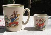 イギリスのロンドンで見つけたお茶目な顔のウサギの小さめのcupとsweetなウサギのegg cupです。マイカップとして使われても・・・カップの上の部分に3mmほどのペイントの剥げた部分がありますが全体的に良い状態です。かわいいセットです。