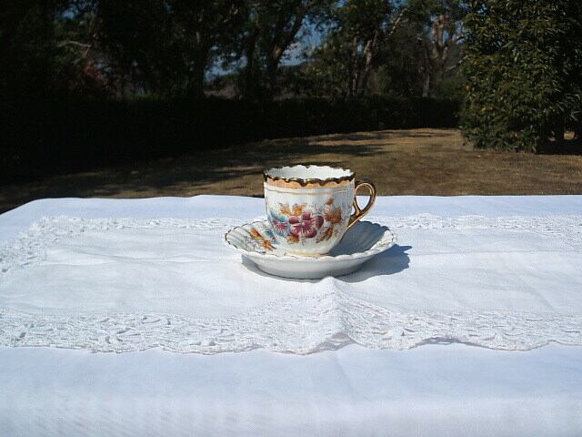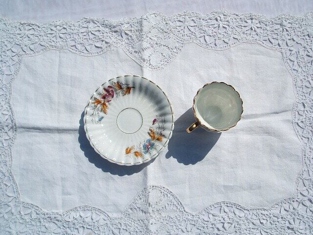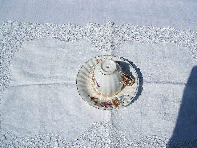 パリで見つけた華やかなデミタスカップです。日本ではあまり見かけない大きさです。自分用としていかがですか?すみれのお花が可憐でとても可愛いカップです。 欠け、ヒビ等なく良い状態です。 No.AK 200408 ■size:cup:5,5cm直径x5,5cm高 saucer:5,5cm直径 ■condition:very good ■France 1940年代